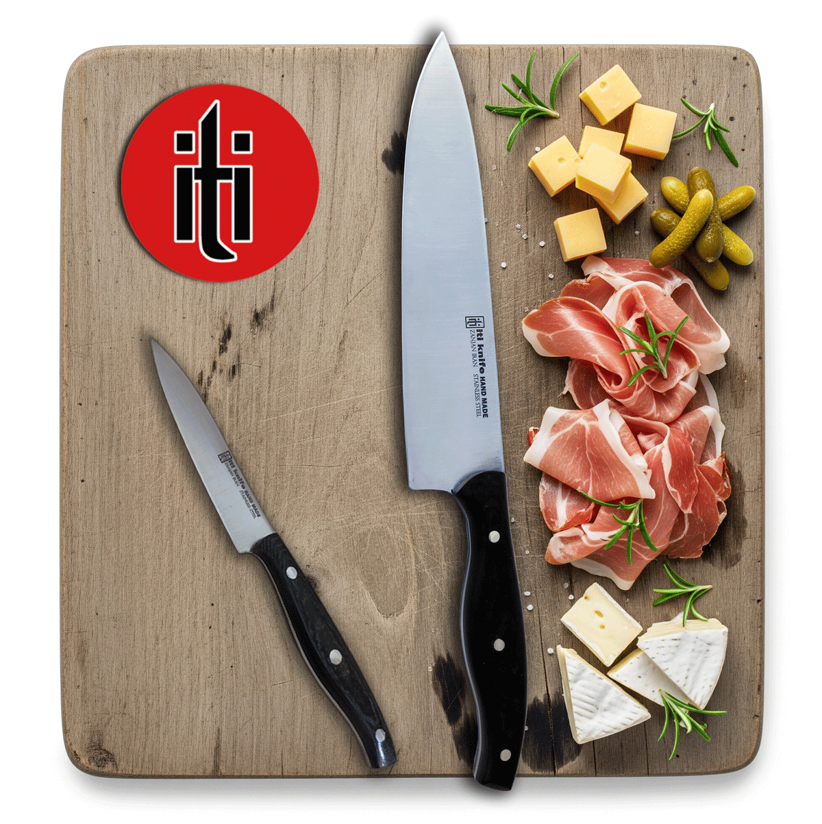 ست دوتایی چاقوی آشپزخانه سایز بزرگ و سایز کوچک برند ITI KNIFE ساخت شرکت نقش و نگار ارغوان با طول 32 سانتیمتر و طول 21 سانتیمتر با طراحی روز دنیا و با مواد اولیه مرغوب مناسب خرد کردن گوشت ، سبزیجات ، سیفی جات ،میوه و استفاده روزمره در آشپزخانه می باشد .